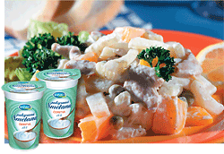 Zbytky krůtího masa a uvařený celer nakrájíme na nudličky, přidáme kostičky oloupaných jablek a dýňový kompot. Směs zakapeme citronovou šťávou, osolíme, opepříme a promícháme. Zakapeme bílým vínem a necháme v chladu odpočinout. Nakonec dáme kysanou smetanu. Tento předkrm podáváme s plátky bílé veky.