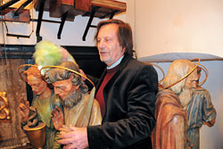 Orlojník sem chodí prakticky den co den, aby zkontroloval, zda je všechno v pořádku. A dnes, protože je pátek, celý stroj i svaté muže opráší, promaže ložiska a srovná čas.
