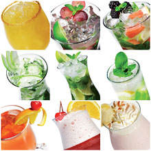 Jestliže si nechcete vysloužit společenské faux-pas, vyplatí se alespoň minimální orientace v druzích jednotlivých sklenic a v podávání hotových nápojů. Mezi základní druhy sklenic pro míchané nápoje patří koktejlka neboli V-shape (sklenice tvaru V na vysoké noze, v níž se podává např. cinzano), tumbler (vysoká či malá sklenice oválného tvaru), koňaková sklenka (baňka na nízké noze typická pro koňaky a whisky) a silnostěnná sklenice s ouškem na horké nápoje.